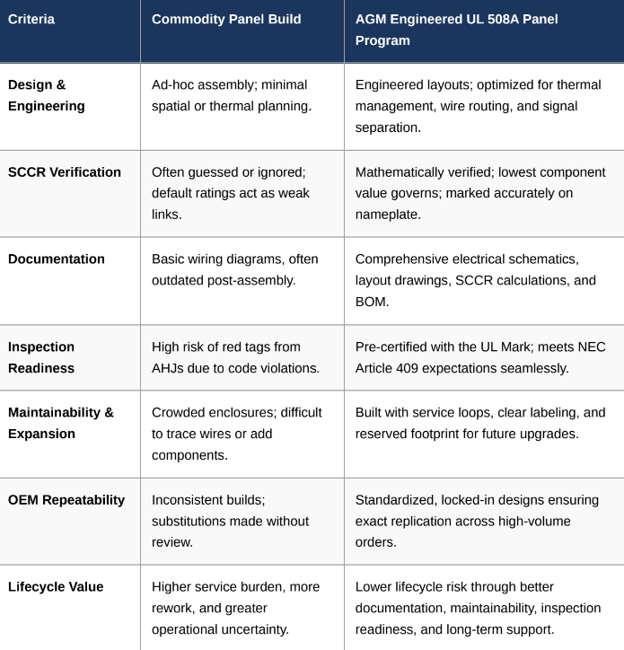 Comparison: Commodity Panel Build vs. Engineered UL 508A Panel Program